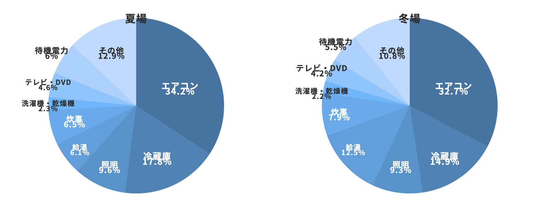 冬は寒いため、給湯にエネルギーを使うのは理解できますが、それでも冷蔵庫の方が割合は高くなっています。